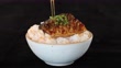 Grilled Saba on Japanese Rice topped with teriyaki sauce.