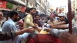Sabeel set by a street serving SHARBAT (flavored syrup) during the month of Muharram in the neighbourhood of Ranchore Lines, Karachi. Sabeel are the cubicle/ spot serving free of cost water, sharbat, foods and juices to the passerby during the first 10 days of Muharram. The act is performed in remembrance of those martyred in Karbala alongwith Syedna Imam Hussain. Sunni followers are distributing here SHARBAT to the general public.