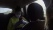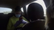 Mother and her teenage daughter traveling by car with facial mask, during Covid 19 pandemic, video,4k resolution.