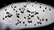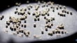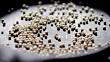 White peppercorns and coriander seeds land in cast iron skillet for toasting.