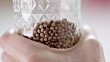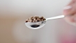 Measuring one teaspoon of coriander seeds from small mason jar.