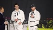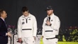 SAN JOSE, CALIFORNIA - FEBRUARY 2: Sam Darnold #14 of the Scott Hanson (L) Seattle Seahawks speaks on stage as Scott Hanson (L) and Drake Maye (C) #10 of the New England Patriots looks on at Super Bowl LX Opening Night at San Jose McEnery Convention Center on February 2, 2026 in San Jose, California. (Footage by Kaelin Mendez/Getty Images)