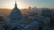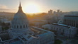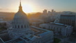 Aerial drone footage showcasing the iconic San Francisco City Hall in all its glory at sunset. Ideal for various productions. Filmed in ProRes HQ.