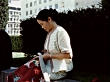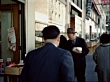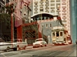 Cable cars moving along the city, VS street scenes, pedestrians crowd the sidewalks; a sidewalk flower stall / HA Union Square; Asian woman sitting and sewing in Union Square; black woman and her children relaxing on park bench; man feeding a huge flock of pigeons / Photographer directs and takes pictures of fashion model women during a shoot on Maple Lane / Chinatown: Chinese restaurant neon signs; a pagoda roof; pedestrians, alleys and street scenes; storefront window displays with Asian artifacts; storefronts; sidewalk produce stand; bank EXT with Asian motif facade / VS Italian restaurant and cafe storefront EXT signs / Italian food factory: VS men fill sausage casings and hang the sausages up on smoking racks; women wearing hair nets making packing sheets of ravioli pasta into boxes.