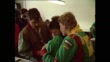 Johnny Herbert (Benetton driver) in pit enclosure talking with mechanic