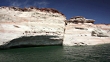 "Sandstone cliffs tower over Lake Powell, a 300 kilometre-long reservoir that straddles the border of Utah and Arizona, USA. The red color found in many sandstone formations is caused by iron oxide found in various amounts throughout the rock and is due to the same chemical reaction that causes rust. Sandstone originates from the breakdown of older rocks through various processes of erosion. No one is sure what causes the holes seen in some places in the sandstone, but they are referred to as tafoni or honeycomb weathering and are likely due to physical and biological factors. Lake Powell is one of the largest man-made reservoirs in the world and provides water for 20 million people living in the drought-prone American Southwest. The reservoir fills Glen Canyon, a vast area that was once home to ancient Native Americans and where numerous archaeological sites are now submerged."