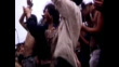 Santana playing on stage, fans clapping and dancing to the music. Super 8mm home movie footage.