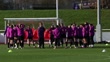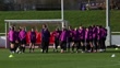 BURTON-UPON-TRENT, ENGLAND - NOVEMBER 28: (AUDIO OMITTED) Sarina Wiegman, Head Coach of England looks on as Chloe Kelly hugs Georgia Stanway during a training session at St Georges Park on November 28, 2025 in Burton-upon-Trent, England. (Footage by Nathan Stirk/Getty Images)