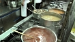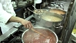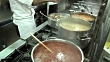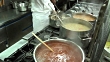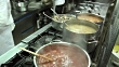 T/L, CU, Sauce pans on stove, chefs in background, mid section - HD stock video