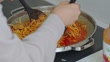Scene of hands cooking pasta using kitchen utensils / South Korea - 4K stock video