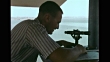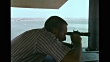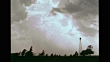 MS Scientist looking through surveyor's transit, WS Storm clouds , trees in silhouette moving violently in wind, WS Lake w/ waves breaking on surface, shoreline w/ high-rise buildings BG. Science, research, evaporation.