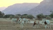 Herd of Scimitar Oryx grazing in captive-breeding program in Israel.