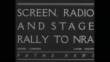 Title card:  "Screen, Radio and Stage Rally to NRA" / group of performers around Postmaster Kiely behind desk, stripes of flag on wall / CU Robert Montgomery at desk signing pledge card supporting the National Recovery Administration; SOT says he's proud to sign / CU opera singer Gladys Swarthout wearing hat signing card at desk smiling; SOT says she's honored to give support to glorious movement / CU Kate Smith wearing hat signing; she looks up SOT saying entertainment world is behind this drive and gives thanks for listening / CU Roy Atwell signing; SOT he scrambles pronunciations of words comically saying it's a pleasure to lend signature and hopes everyone will sign a card / Pathe rooster emblem / Note: exact month/day not known
