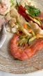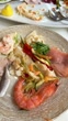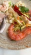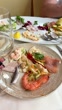 Seafood appetizer platter with wine glass at italian restaurant - 4K stock video