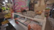We see a seafood cocktail bar inside a farmer's market in Mexico, on the shelves we see shrimp, crabs, and mollusks part of this seafood cocktail bar and restaurant in this farmer market