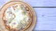 Seafood (shrimps, octopus, mussel and crab) pizza on wood tray