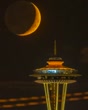 Photographer Captures Crescent Moon Timelapse Over Space Needle