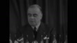 SOT NATO Secretary General Lord Ismay announces Jonkheer van Vredenburch as his deputy and states "...our way is the way of security and peace. That is our aim..." / CU van Vredenburch looks on (side profile)