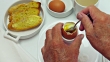 Senior male hands spooning soft boiled egg - HD stock video
