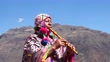 Senior man dressing traditional peruvian clothing and playing flute - 4K stock video