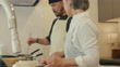 MS- Senior woman and her adult son preparing traditional Japanese New Years food together. Shot in 5K. Okayama, Japan