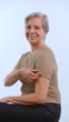 Senior woman smiling at camera showing bandage after vaccination - 4K stock video