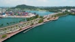 Sentosa Beach, Singapore. Aerial view of beach and coastline on a sunny day - 4K stock video