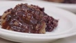 Seoul, house, kitchen, pouring sauce over hamburger steak placed on plate / South Korea - 4K stock video