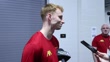 PITTSBURGH, PENNSYLVANIA - JULY 26: Sepp van den Berg of Liverpool, speaks about speaking to Arne Slot after their friendly match against Real Betis during an interview at Acrisure Stadium on July 26, 2024 in Pittsburgh, Pennsylvania. (Footage by Niche Sport Media via Getty Images)