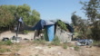 Tent City where the homeless live in shacks made from garbage and other materials in Visalia, California.