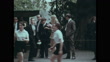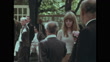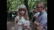 Seq. of a model handing out flowers to men in London; 1967 - HD stock video