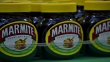 Sequence of shots showing tubs of Marmite being labelled on a factory production line (News Bulletin 05/10/18 10pm - ABSA627D)
