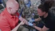 Serena M. Auñón-Chancellor gets blood from astronaut Alexander Gerst. The mission of Expedition 56 began on 1 June 2018 upon the departure of Soyuz MS-07. It ended on October 4, 2018. During the stay, the crew had to fix a 2mm hole in the Soyuz MS-09 which was leaking air. The image is a handout from NASA as part of the first 8K video released by the science organization.