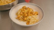 Serving chorizo sausage and butternut squash spaghetti - 4K stock video
