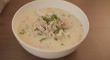 close view of sprinkle fine chopped parasley on the creamy chicken sweet corn soup