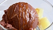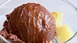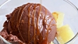 Serving of Chocolate Ice Cream with Small Pieces of Pineapple and Caramel Sauce - 4K stock video