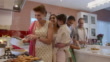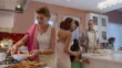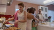 A low angle static close up of a grandmother cooking Aloo Chaat in her daughter's kitchen as they all congregate together to celebrate Diwali in her daughter's family home in the North East of England.