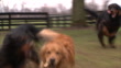 Several dogs run outdoors in a fenced area. - HD stock video