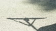 Shadow of man carrying wooden rake over gravel. (Core Number: FKAC793R)