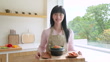 Share house - Woman smiling at camera while holding finished pollack pot rice - 4K stock video