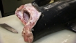 Closeup shot of a shark called Shortfin mako shark or Blue shark on a cutting board to make Hanpen fishcake