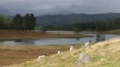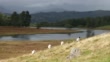 Sheep at Wise Een Tarn above Sawrey, looking towards the Langdale Pikes, Lake District, UK. - 4K stock video