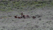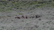 WS 4K shot of famous grizzly bears #399 and #610 (Ursus arctos) and their 6 cubs as they meet face to face out in the sage meadow - 4K stock video