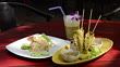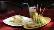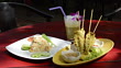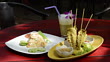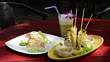 CU Shot of Fried Rice with Shrimps and Chicken Satay and Pineapple juice, typical Thai Food / Island Ko Lanta, Krabi Province, Thailand - HD stock video