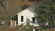 CU AERIAL DS ZO Shot of front entrance to Little White Schoolhouse where Republican Party was born / Ripon, Wisconsin, United States - HD stock video