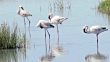 MS Shot of Lesser Flamingos preening in water / Cape Town, Western Cape, South Africa - HD stock video