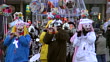 MS Shot of people wearing mask and celebrating in Basel Carnival (Basler Fasnacht) / Basel, Switzerland - HD stock video