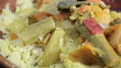 CU PAN Shot of traditional Moroccan couscous meal dish / Fez, Fes-Boulemane, Morocco - HD stock video