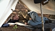 MS PAN Shot of Young woman disguised as man puts on her uniform and leaves tent she was sleeping in / Plum Grove, Maryland, United States - HD stock video