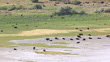 CU AERIAL ZO Shot over buffalos and farm at Great Salt lake on antelope Island / Utah, United States - HD stock video